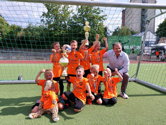 Ausgeglichen werden konnte dieser kleine Misserfolg aber mit dem erneuten Sieg beim ersten Futsal Turnier in Bad Homburg. Futsal - ein Ball, der nicht springt und schwer wie eine Bowlingkugel scheint, fordert Geschick und mutige Tricks heraus, die die Jungs mit Bravour auf den Hallenboden zauberten. Glückwunsch!