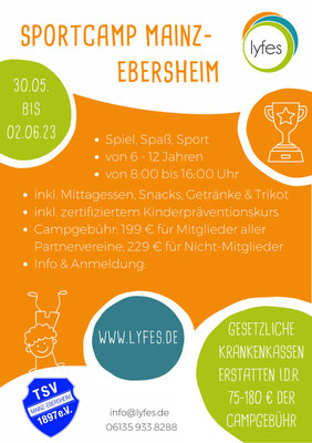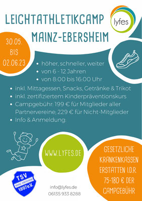 wir möchten euch darüber informieren, dass wir in den Pfingstferien 2023 in Ebersheim sowohl ein spezifisches Leichtathletik-, als auch ein allgemeines Sportcamp für Kinder anbieten werden.