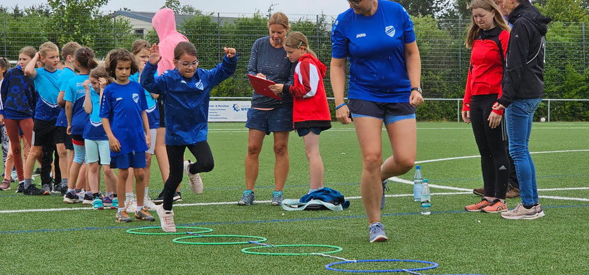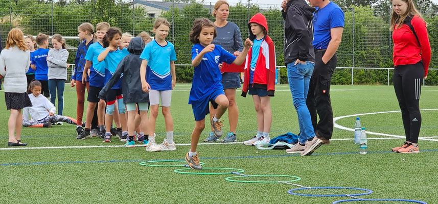 Zum ersten Mal richtet die TuS Saulheim am 01.07.2023 einen KiLa-Wettbewerb aus und gleich wurde es richtig ungemütlich für die drei Teams vom TSV Ebersheim, aber auch für alle anderen über 190 Teilnehmer. Und, das lag nicht an der Motivation, sondern ausschließlich am bescheidenen Wetter. Immer wieder Regenschauer gepaart mit teils heftigen Windböen aus unterschiedlichen Richtungen ließen diesen Sommertag sehr herbstlich daherkommen.