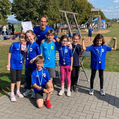 Am 30.09.2023 fand, in Gau-Algesheim, der letzte Kinderleichtathletik-Wettkampf für diese Freiluft-Saison statt. Bei super Wetter traten unsere U8 und unsere U10 an, eine U12 konnten wir erneut leider nicht stellen, um sich im Team-Biathlon, Drehwurf und Stabweitsprung mit den anderen Rheinhessischen Vereinen zu messen.