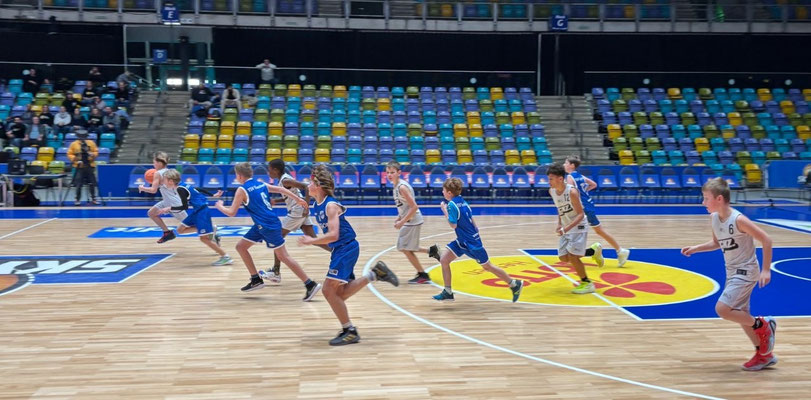 Die Siegerehrung fand in der Halbzeitpause des Profi-Spiels der Skyliners gegen die MHP Riesen Ludwigsburg statt, welches unsere TSV Basketballer ebenfalls begeistert verfolgten.