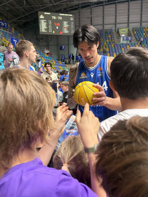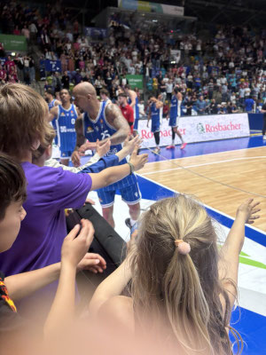 So unternahmen wir einige Ausflüge nach Frankfurt, feuerten die SKYLINERS an, waren Einlaufkinder, gewannen ein U12 Turnier auf dem heiligen Court der Ballsporthalle Frankfurt und durften zuletzt den Sieg gegen die Telekom Baskets Bonn hautnah aus der Courtside-Box mitverfolgen.